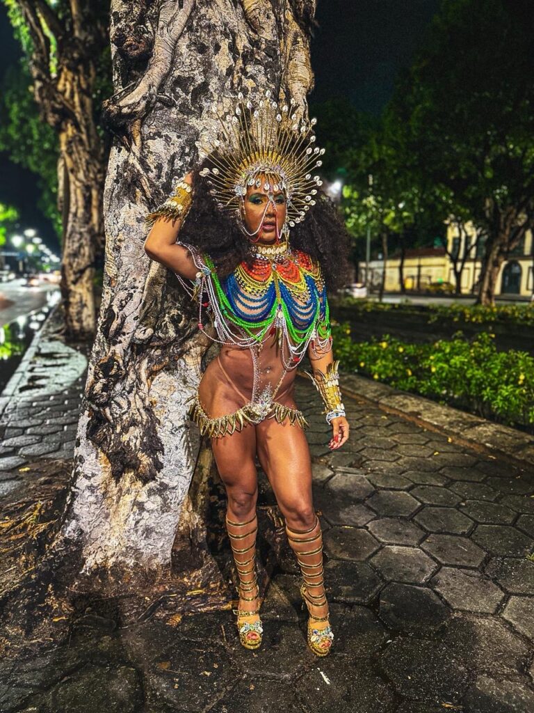 O figurino da musa carregava um propósito claro: representar o afastamento de todas as energias negativas para que o desfile oficial ocorra em total harmonia. Ao pisar no “solo sagrado” do samba, Lili Tudão demonstrou por que é uma das figuras mais queridas da comunidade do Berço do Samba.
